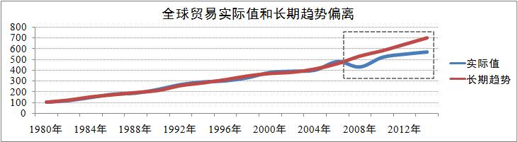貨幣市場方面,主要經濟體貨幣政策分化加劇,全球貨幣政策總體量化寬松。自2008年國際金融危機之后,國際組織的政策協調成效并不明顯。在2014年11月舉行的二十國集團(G20)首腦峰會上,各方承諾在未來五年內將G20整體GDP由目前預測水平提高2%以上。但總體來說,具體的實施效果不容樂觀,國際貨幣基金組織和世界銀行等國際經濟組織倡導的改革則一再拖延,各國貨幣政策措施分化嚴重。美國于2014年10月份完全退出量化寬松;歐元區和日本年中以后仍在加大寬松政策力度;俄羅斯和巴西分別升息6次和5次,累計升息幅度全年達1150個和125個基點;羅馬尼亞和韓國分別降息3次和2次,累計降息100個和50個基點。現階段,全球貨幣政策呈現出總體量化寬松的趨勢。其中,歐盟和日本主要以債券方式推行貨幣寬松措施,英國和美國通過有限升息預期維持著基本貨幣寬松,中國采取定向量化寬松政策,其他經濟體大多數采取形式各異的寬松措施。貨幣政策總體量化寬松將推動全球貿易的回暖,也將導致貿易實際值偏離長期趨勢,部分貿易實際值為匯率風險所抵消。
