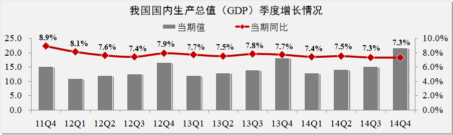 發(fā)稿時(shí)間:2015-01-232014年度我國國內(nèi)生產(chǎn)總值為63.6萬億元,同比增長7.4%,較2013年下滑0.4個(gè)百分點(diǎn)。其中,第一產(chǎn)業(yè)同比增長4.1%,第二產(chǎn)業(yè)同比增長7.3%,第三產(chǎn)業(yè)同比增長8.1%。IMF預(yù)計(jì)2015-2016年我國經(jīng)濟(jì)增長速度將繼續(xù)維持放緩趨勢,年度增長率分別為6.8%和6.3%。研究指出,現(xiàn)階段國內(nèi)當(dāng)局更加注重化解短期信貸以及投資擴(kuò)張帶來的資產(chǎn)負(fù)債表脆弱性風(fēng)險(xiǎn)。