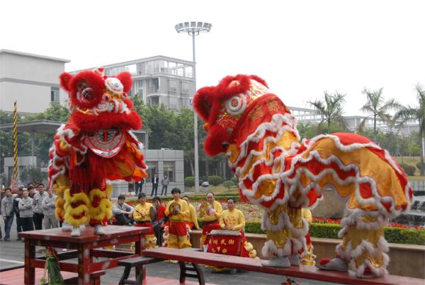 在各部門開工會議結束后,集團開工儀式正式開始,儀式第一項是燃放開工禮炮。聲聲爆竹響徹整個工業區,街道上的喧嘩聲,汽車的轟鳴聲一并淹沒在其中,站在現場的每一個員工都能感覺到雷鳴般的震憾,不少員工情不自禁地捂住了耳朵,大家臉上都洋溢著喜悅的神情。新的一年新的開始,這響徹云霄的爆竹,昭示著廣鋁集團將在新的一年里紅紅火火,旺上添旺。隨著葉董事長在獅子上“畫龍點睛”的一筆,儀式第二項祈福醒獅開始。鑼鼓陣陣,只見威武的獅子上躥下跳,“采青”更是將現場氣氛帶向高潮。醒獅采青寓意著廣鋁集團在新的一年里吉祥如意,大展宏圖;祈盼每一位廣鋁人在新的一年生活和美安康。